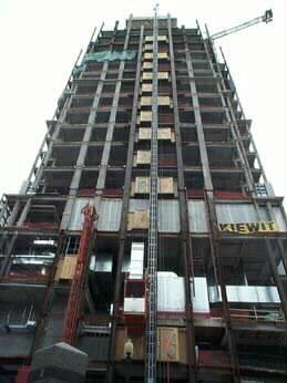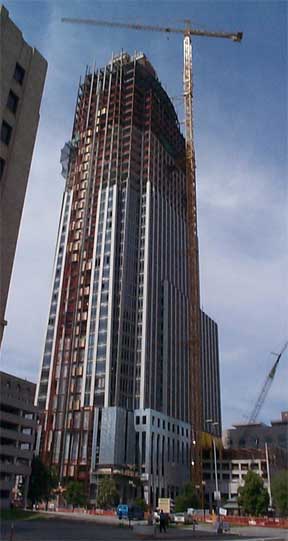 Construction of the Tower at First National Center began during the summer of 1999. The tower is being built in the block surrounded by Douglas and Dodge Streets from Sixteenth to Seventeenth Streets, the former location of the Medical Arts Building. When completed, the tower will be the tallest structure in Omaha. During the construction, this page will display the progress of the construction.