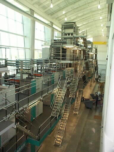 The $125 million production facility, located at 14th and Capitol Streets in Omaha, contains an entry way with various historical displays. The 272 foot, 8 inch press hall, located on the west side of the building, contains the main presses, which are currently printing approximately 75,000 newspapers per hour.