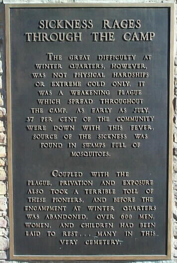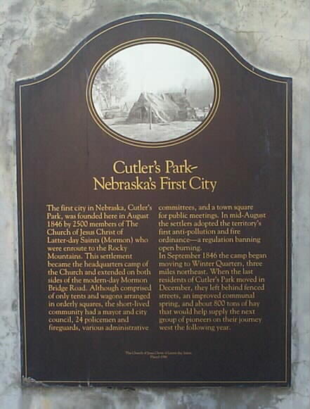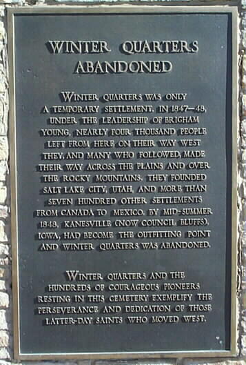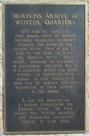 The Winter Quarters Temple, Mormon Trail History Center and Mormon Winter Quarters Cemetery are located at the intersection of State Street and North Ridge Drive in north Omaha. The links below are to pictures of the permanent monuments on display at the site. The monuments tell the story of the Mormon Pioneers' passage through the Omaha area during their trek to the mountains of present-day Utah.