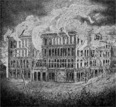 Five years later, on the evening of September 4, 1878, a spark from a plumber's blowpipe ignited inflammable material and minutes later, the hotel was an inferno. The building was unoccupied, as it had been undergoing extensive remodeling under the new management of Charles W. and James B. Kitchen of the Kitchen Hotel Company which had only recently bought Mr. Thrall's Interest. Five firemen died in the blaze.