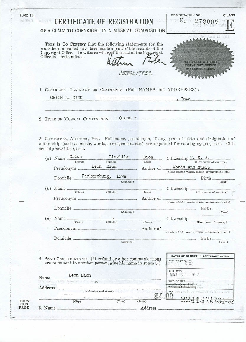 (Thanks to Tom Fitzsimmons of County Cork, Ireland, for contributing this recording and lyrics. Once an Omahan, always an Omahan.)