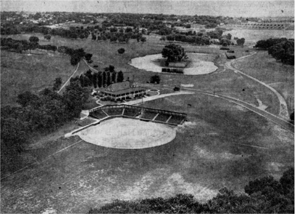 In the foreground is the baseball diamond and grandstand, which might have been the home field of the Western League Omaha Cardinals if some residents of the area had not objected. Many sandlot baseball games are played here. The grandstand will seat about two thousand persons.