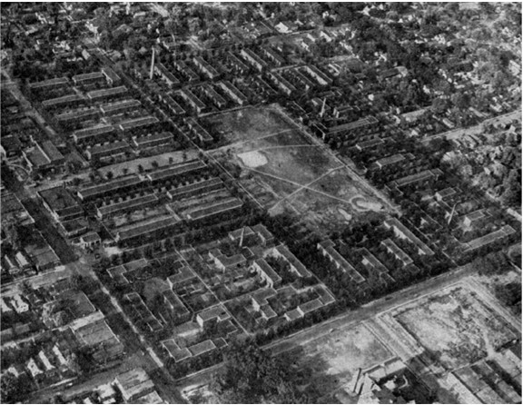 A section of the South Side Terrace Homes is visible at left. The homes are situated in 10 square city blocks from R to W Street and between Twenty-eighth and Thireith Streets. A total of 522 families (two thousand persons) live here.